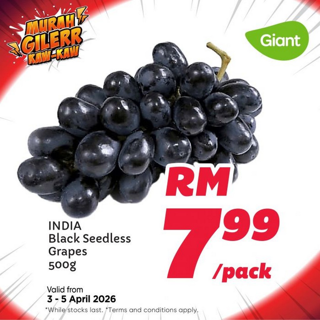 The promotion isn’t limited to dry goods. MILO Activ-Go Soft Pack (900g) at RM17.99 is a must-grab for families with children, providing a nutritious energy boost and a beloved Malaysian favourite. For seafood lovers, the VANNAMEI Prawn 30/40 at RM30.99 per kg offers fresh, succulent prawns at a price that’s hard to beat elsewhere. And for those who enjoy fresh fruits, the INDIA Black Seedless Grapes (500g) at RM7.99 per pack make for a healthy and affordable snack option.