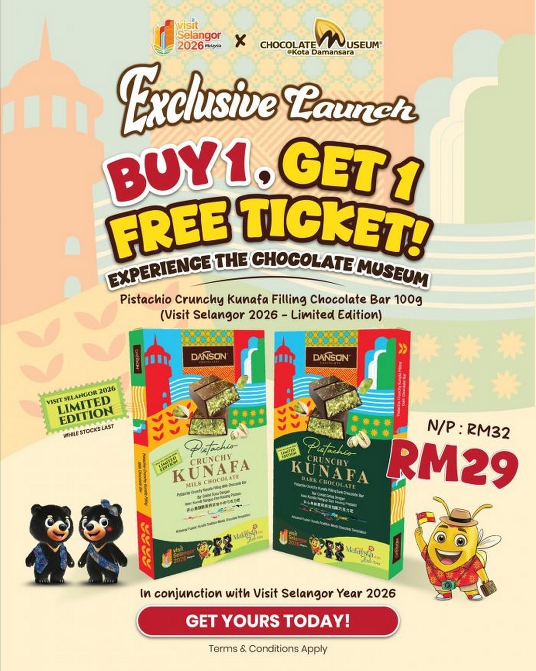 But the excitement doesn’t stop at entry tickets. The Chocolate Museum is also unveiling a limited edition treat, available exclusively during MATTA Fair 2026: the Danson Pistachio Crunchy Kunafa Filling Chocolate Bar. This 100g artisanal chocolate is offered in both Milk Chocolate and Dark Chocolate varieties, and it’s a harmonious blend of traditional Malaysian flavours and sophisticated chocolate craftsmanship.
