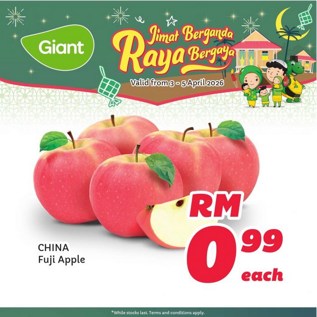 In conclusion, the Giant “Jimat Berganda Raya Bergaya” weekend promotion is a must-visit for anyone looking to prepare for Raya efficiently and economically. With prices as low as RM0.99 for apples and RM29.99 for a 10kg bag of rice, along with significant discounts on meats, frozen foods, and pantry staples, this promotion offers something for every household. Shoppers can enjoy the festive season with well-prepared meals and stocked pantries, all while staying mindful of their budgets.