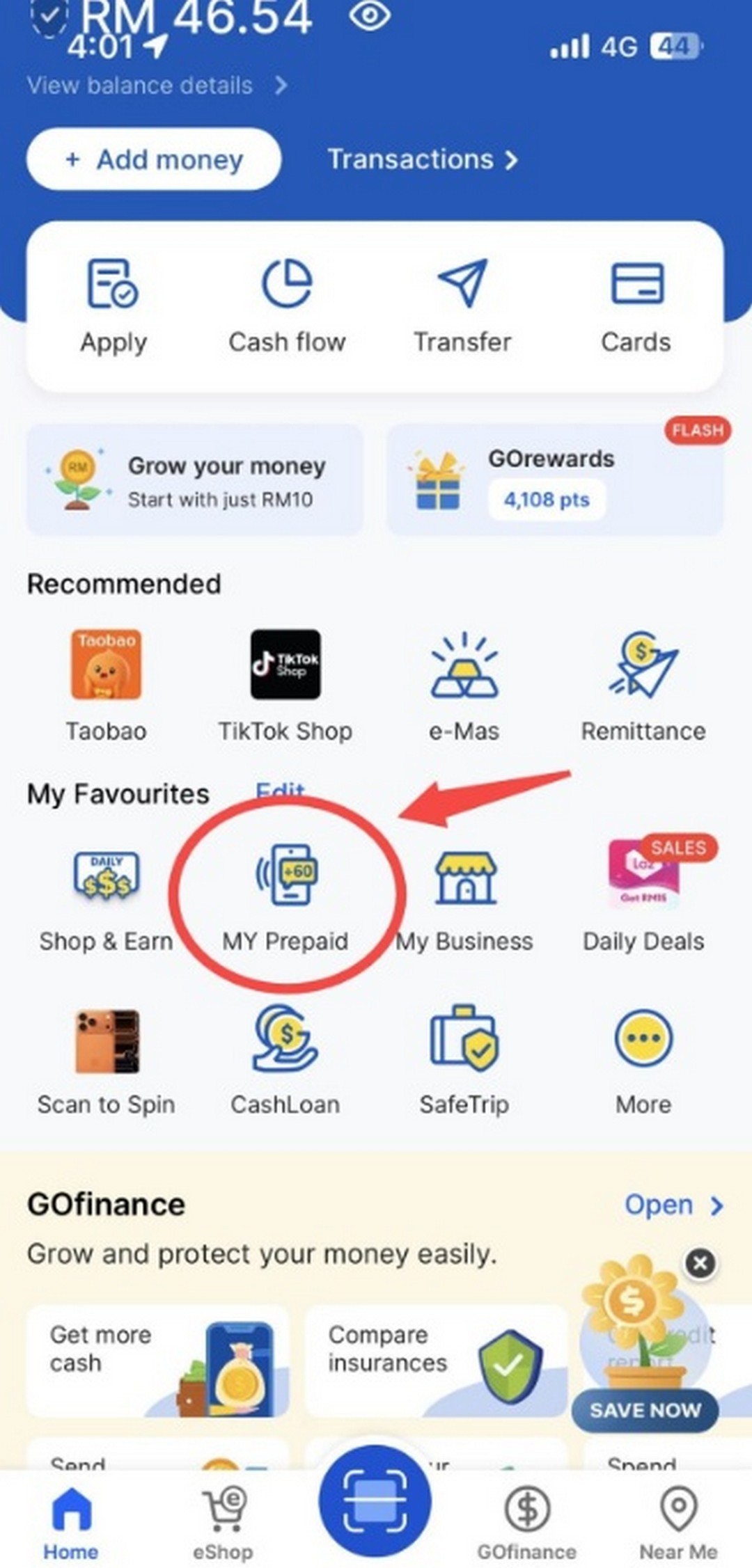 - Open the MY Prepaid section on the TNG app.
