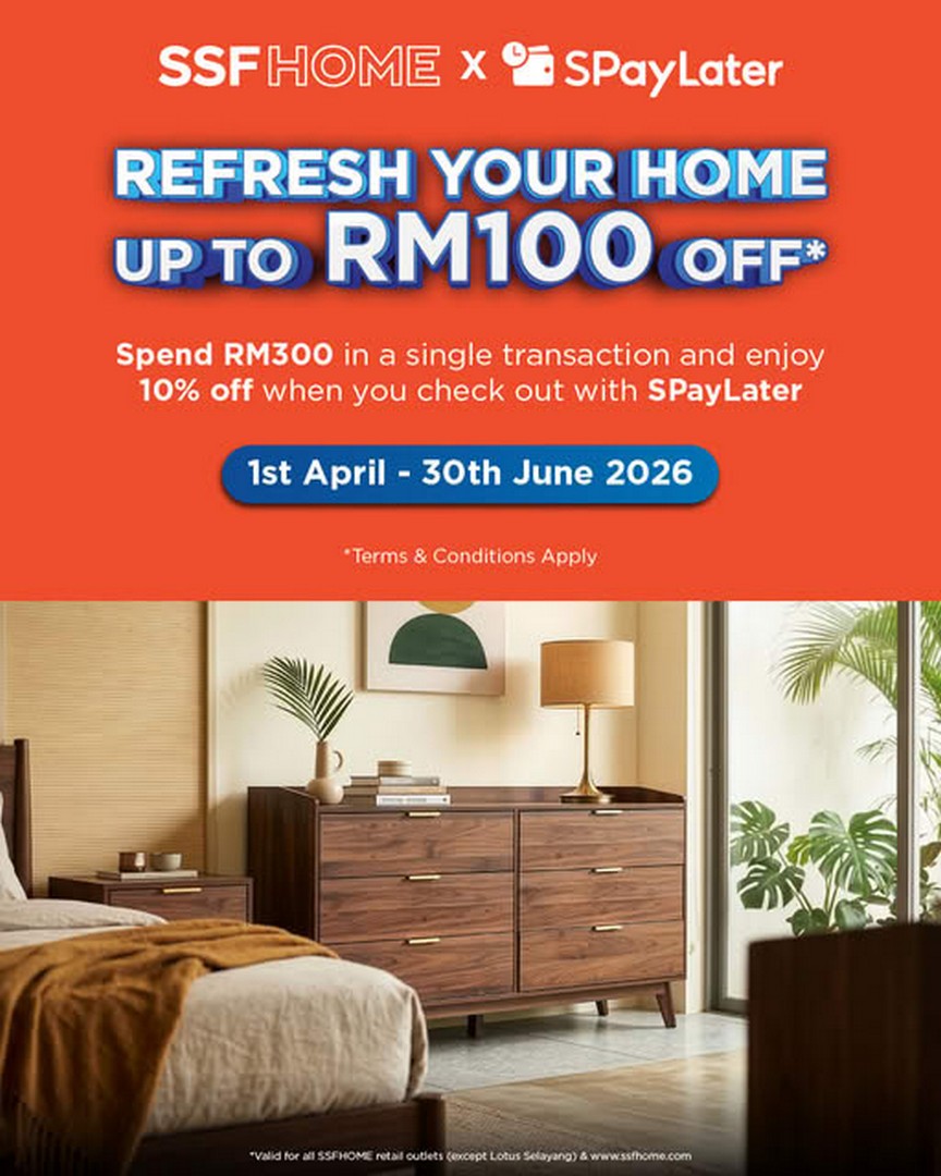 Running from 1 April until 30 June 2026, SSFHOME is rolling out a simple yet attractive deal that encourages shoppers to upgrade their homes while enjoying meaningful savings. By spending a minimum of RM300 and choosing to pay with SPayLater, customers can enjoy a 10% discount, capped at RM100. While it may sound straightforward at first glance, the value behind this promotion is actually quite significant, especially for those who have been planning to spruce up their interiors.