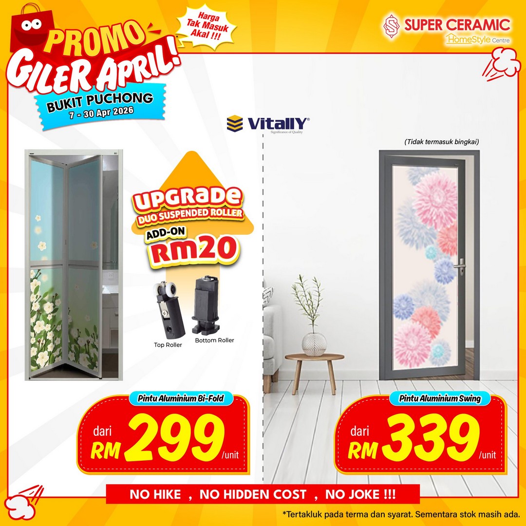 In conclusion, the Super Ceramic April Crazy Promo at Bukit Puchong is a promotion worth exploring for anyone planning home improvements or looking to upgrade security doors without unnecessary delays or unexpected costs. The ready stock ensures instant availability, the pricing remains fair, and there is complete transparency in costs. With a wide selection, flexible visiting hours, and easy access through Google Maps and Waze, this promotion makes it convenient and stress-free to secure a quality door for any home. First-come, first-serve availability adds an element of urgency, making it clear that early action is wise.