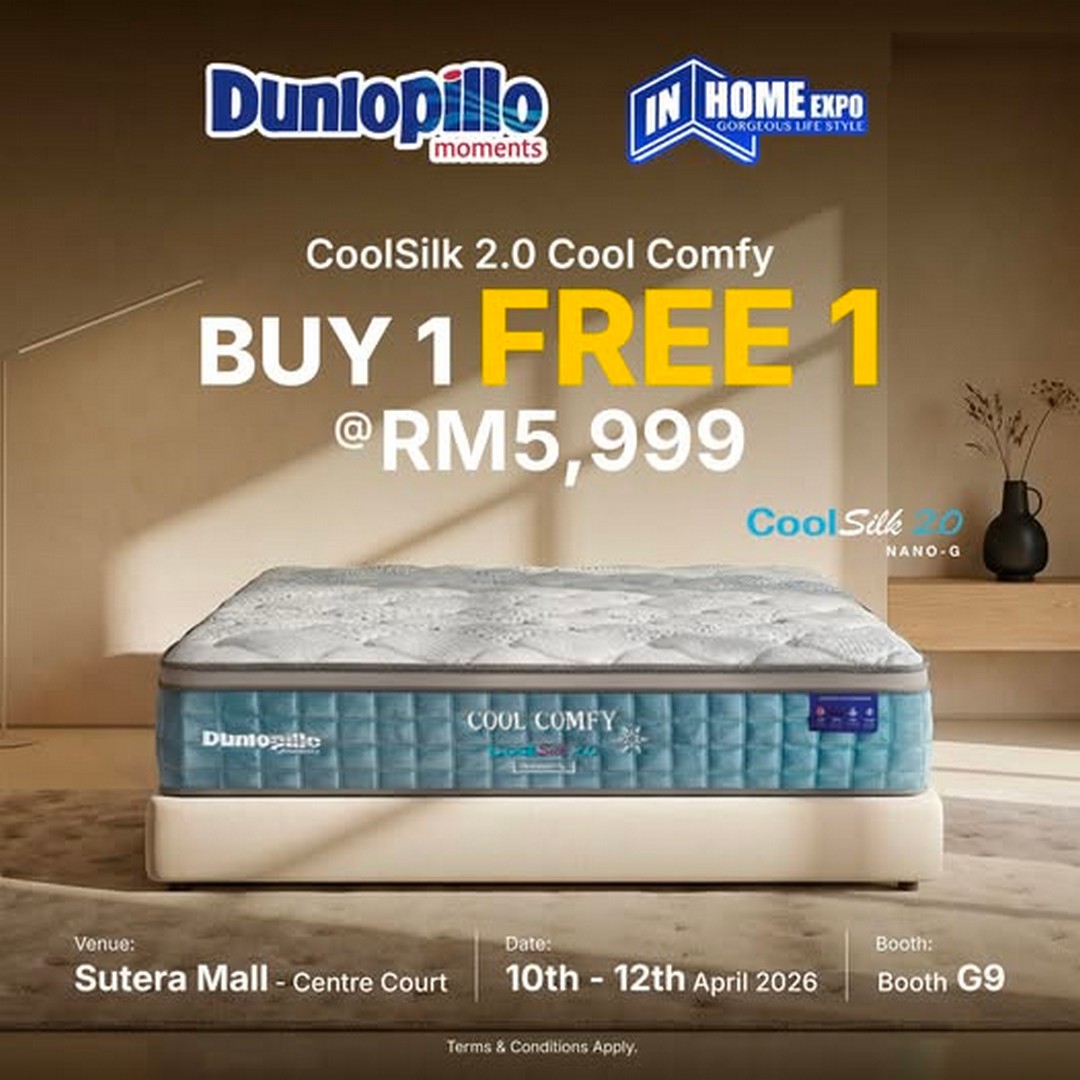 For anyone who’s been dreaming of a better night’s sleep, this is one deal that deserves your attention. Dunlopillo Malaysia is bringing something truly special to the IN HOME Expo this April, and it’s an offer that promises both luxury and value. For a limited time only, visitors can get their hands on the CoolSilk 2.0 Cool Comfy mattress with an exclusive Buy 1 Free 1 promotion, priced at just RM5,999.
