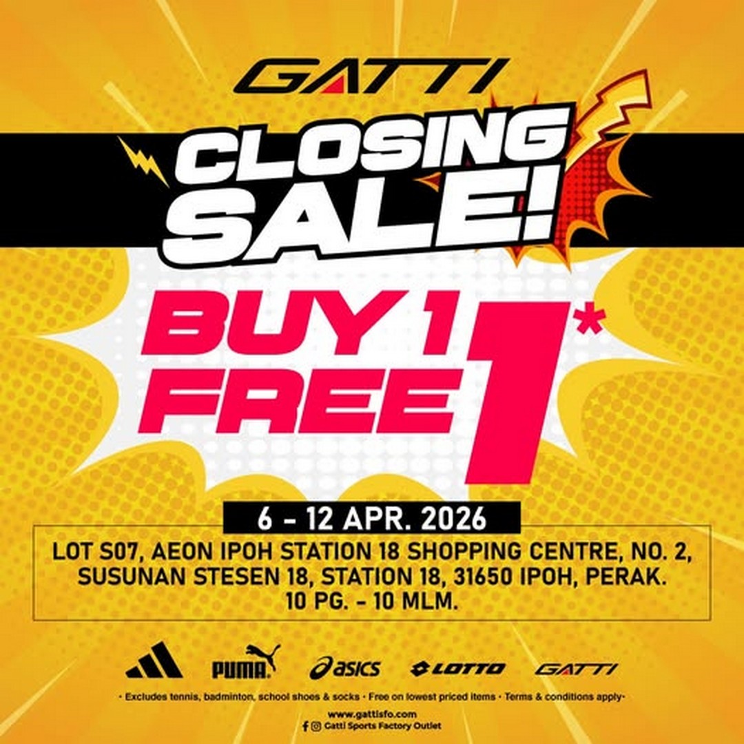 In the end, the Gatti Sports Factory Outlet Closing Sale is more than just a retail event. It is an opportunity to secure practical, everyday items at exceptional value, all within a limited timeframe. With the added appeal of a Buy 1 Free 1 offer, it becomes a compelling reason for shoppers to make their way to AEON Ipoh Station 18 before the sale concludes.