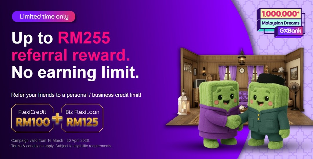 Here’s the deal: GXBank is inviting both existing and new users to refer friends to their personal or business credit limit service, known as FlexiCredit. For every friend who signs up and completes the required steps, both the referrer and the friend can earn RM100 each. If they play their cards right, there’s no limit to how many friends they can refer, meaning the potential earnings could really add up.