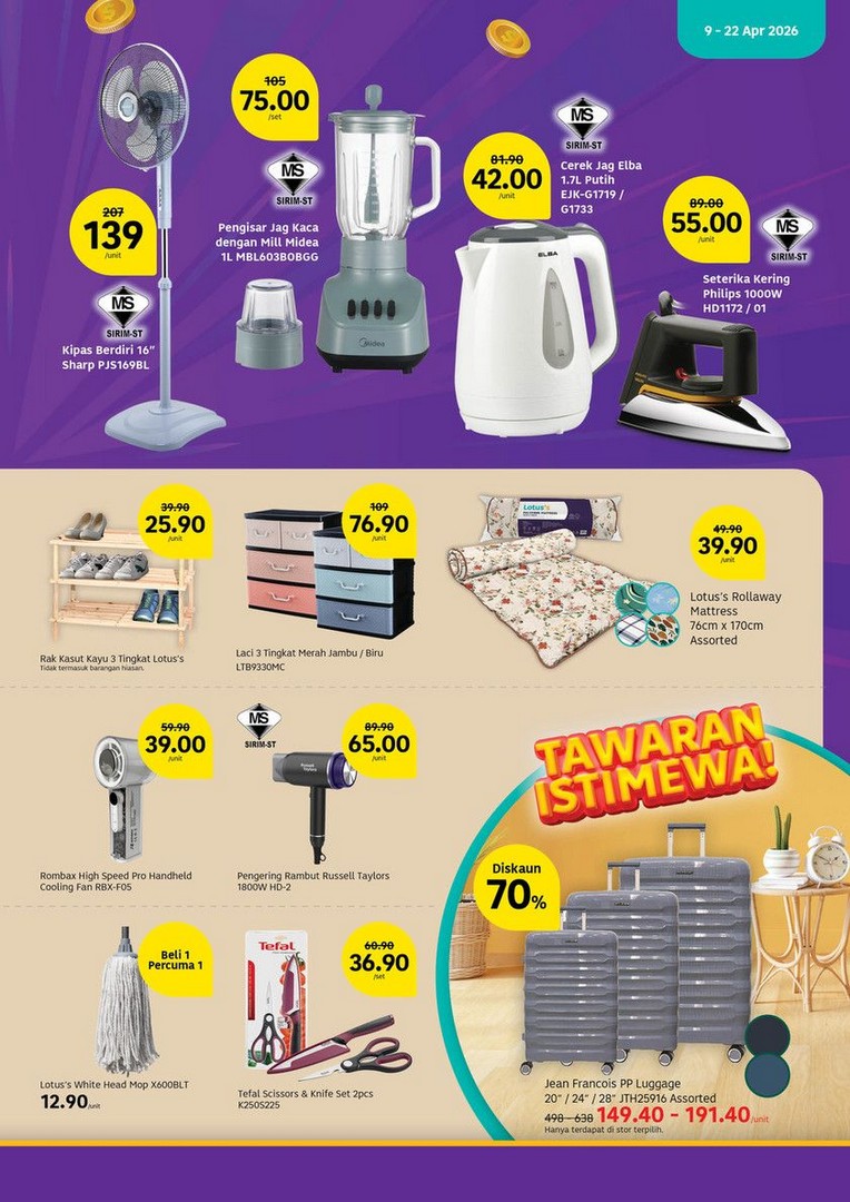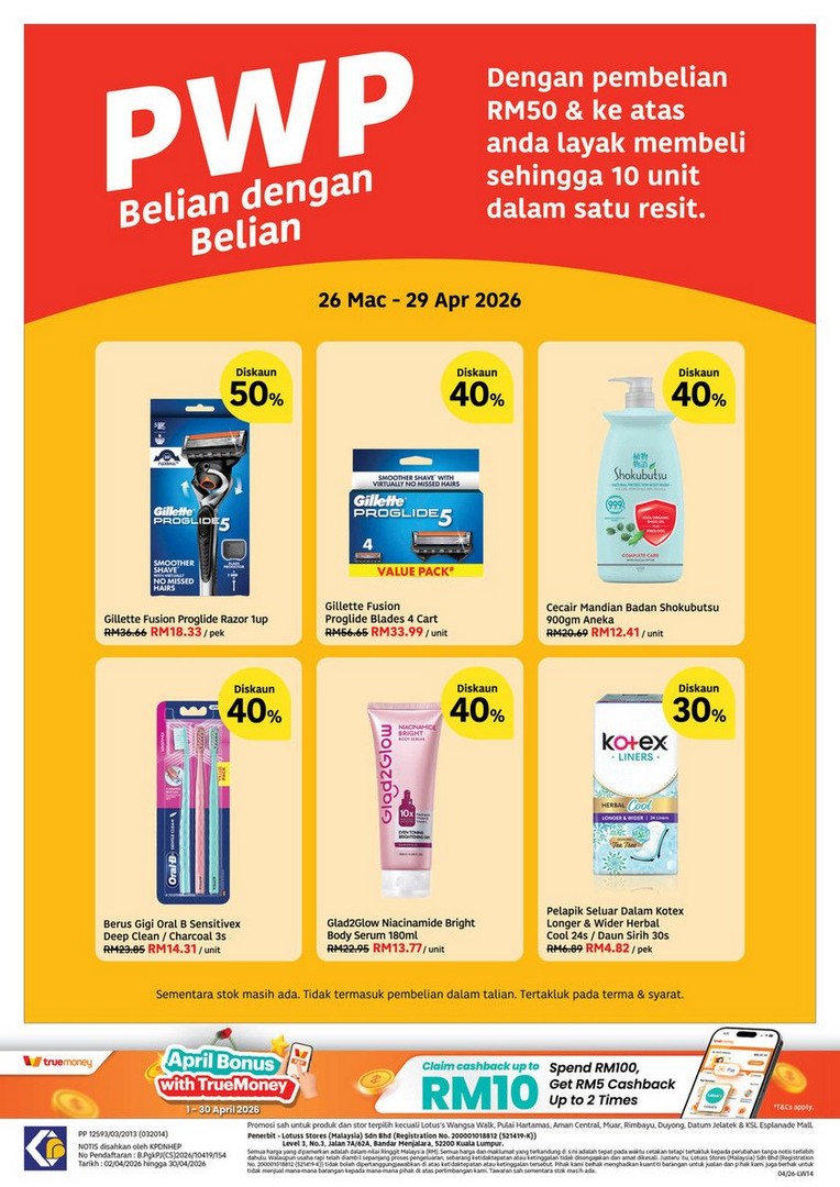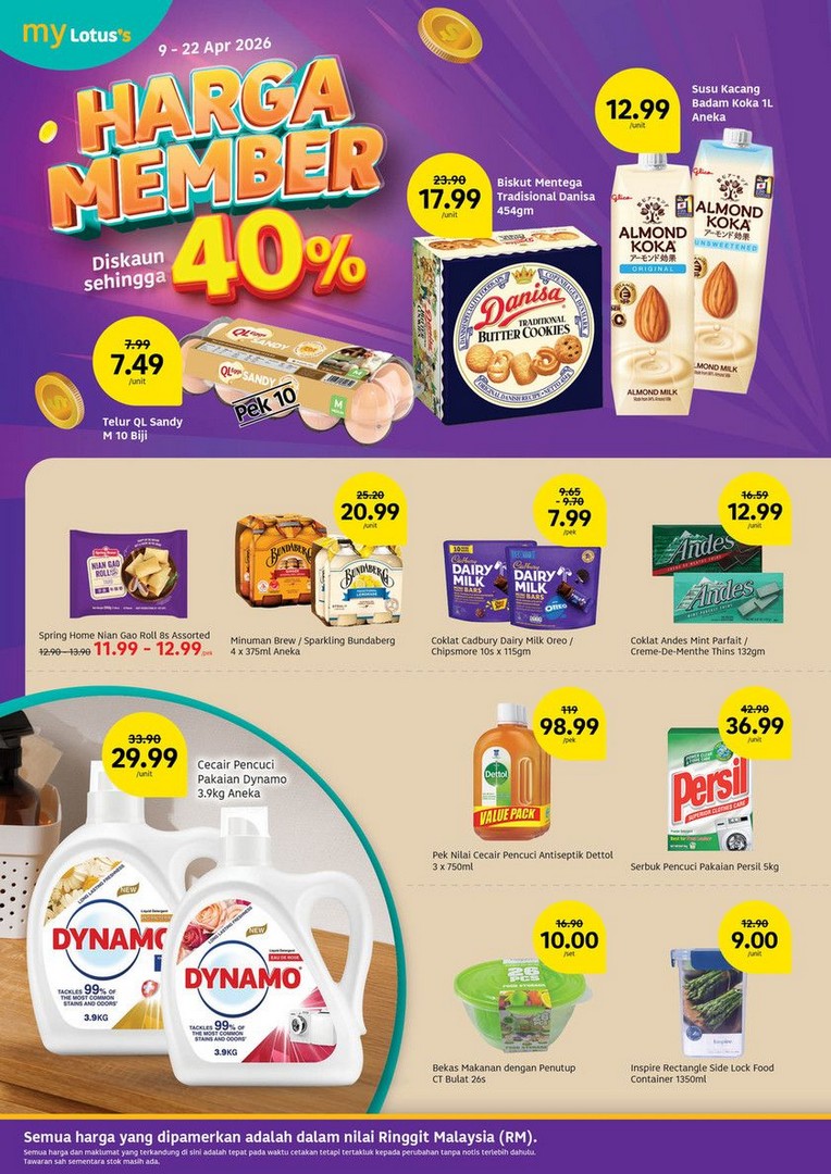 The second part of the promotion runs from 9 to 22 April 2026 and includes everyday household items and groceries under the “Lebih Murah & Harga Member” deals. Here, members enjoy exclusive discounts of up to 40% on selected items. If you aren’t yet a Lotus’s member, now is a great time to join – the savings can be substantial, especially for bulk purchases.