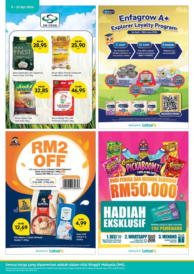 Redeeming these deals is straightforward. Simply visit any Lotus’s store nationwide and start shopping. If you are a Lotus’s Member, scanning your membership app at the checkout unlocks the Harga Member pricing. In addition, recipients of SARA benefits can enjoy an extra RM3 off e-coupon with a minimum spend of RM50, valid from the 1st to 14th of the month.