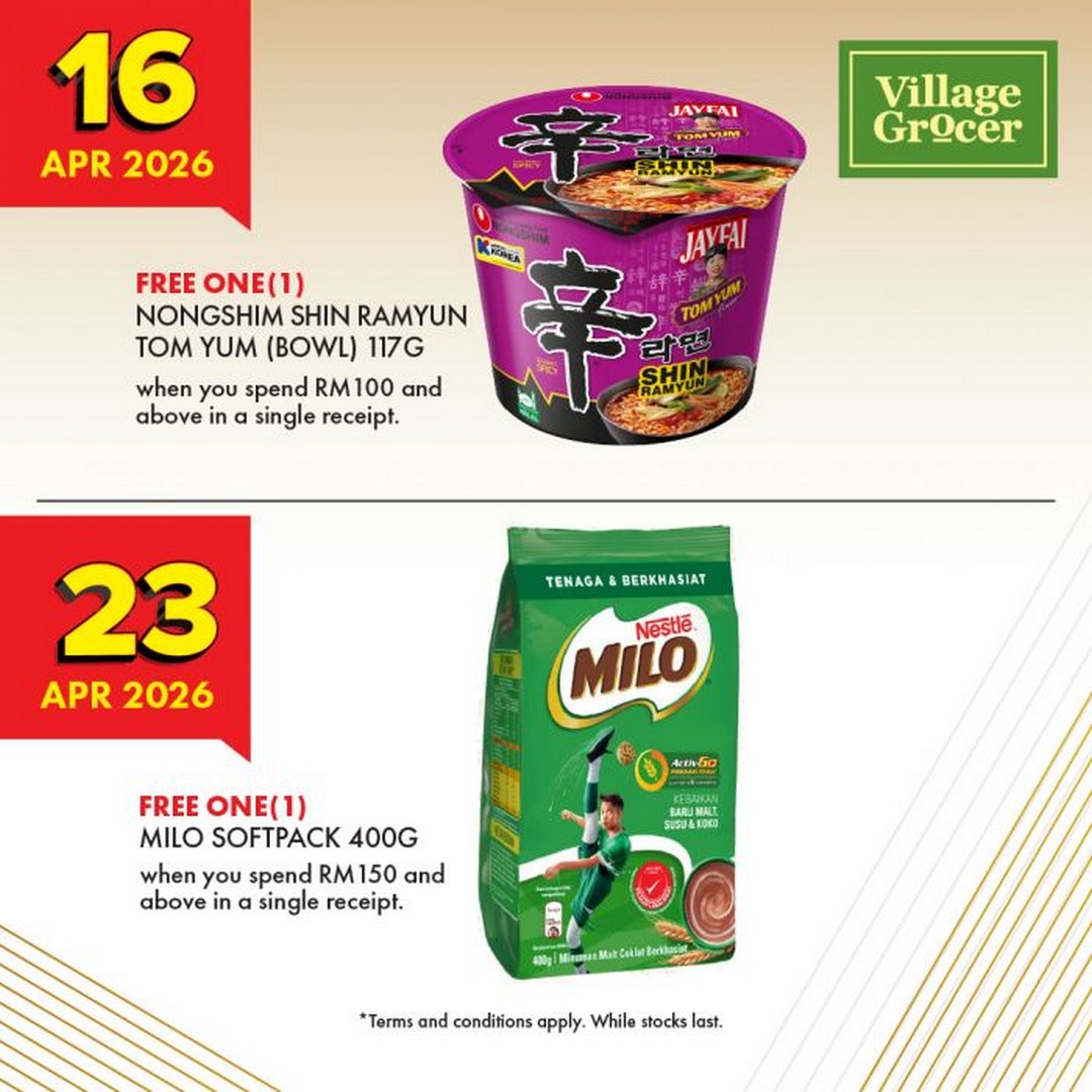 - 23 April 2026 – Free MILO Softpack 400g with RM150 spend
