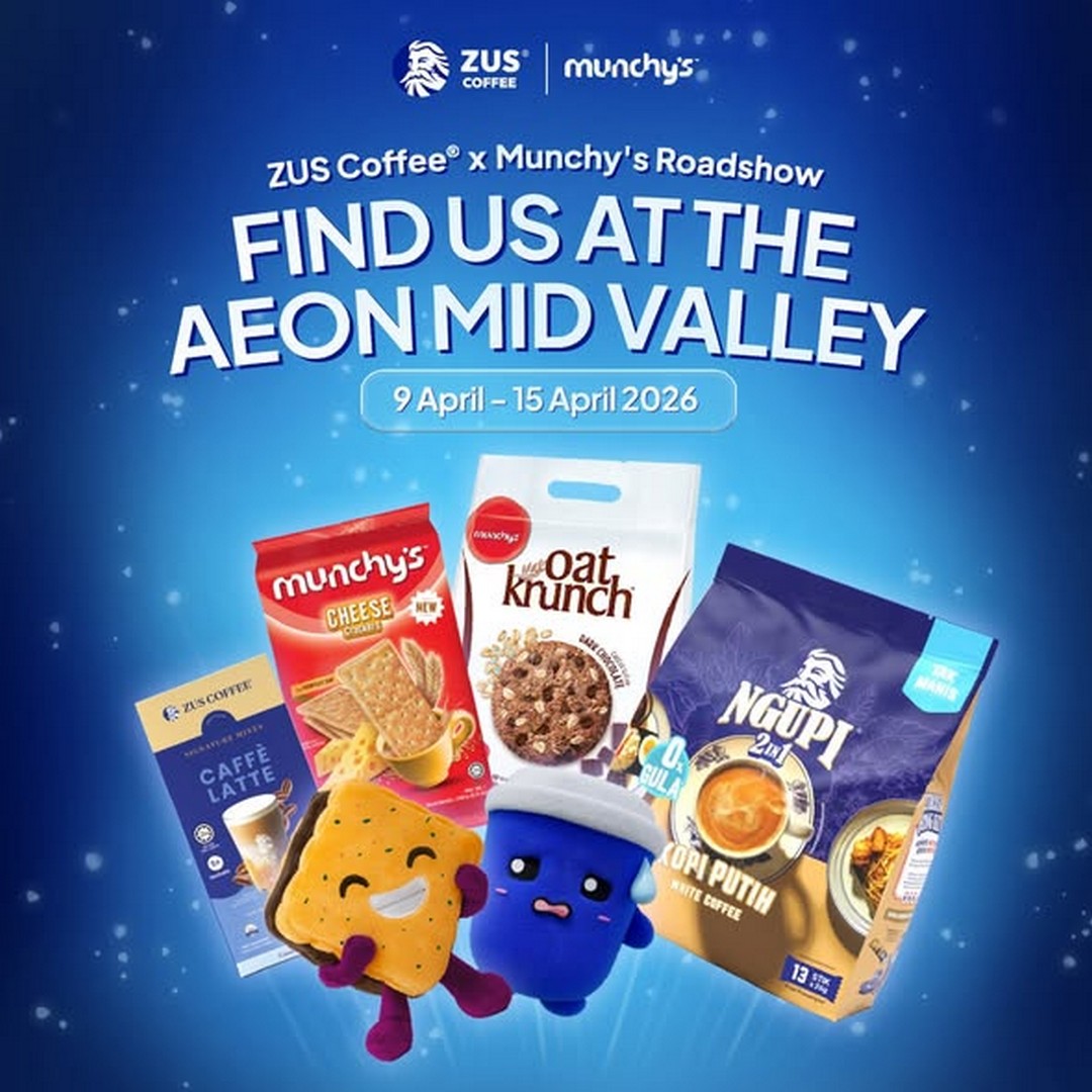 The collaboration between ZUS Coffee and Munchy’s is turning heads with their roadshow happening right at AEON Mid Valley Megamall. From 9 to 15 April 2026, shoppers can expect more than just a regular coffee stop. This is a full-on experience that blends beverages, snacks, rewards, and a bit of fun along the way.