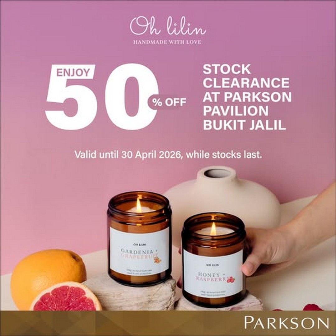 Right now, shoppers heading over to Pavilion Bukit Jalil can enjoy a rather attractive deal – a 50% OFF stock clearance on Oh Lilin candles. It is one of those promotions that may seem small at first glance, but once people think about how often candles are used, gifted, or even collected, it quickly becomes a practical and worthwhile bargain.