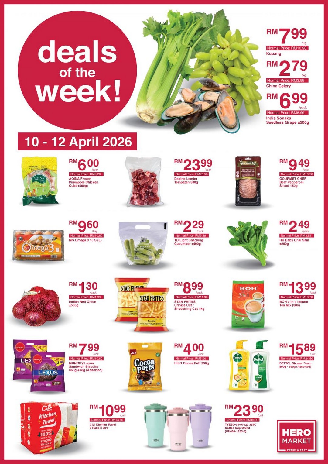 Running from 10 to 12 April 2026, this weekend sale is positioned as a practical chance for families, working adults, and even students living away from home to stretch their ringgit a little further. It is not just about small discounts here and there, but rather meaningful price cuts across fresh produce, pantry essentials, and household items that people actually use daily.