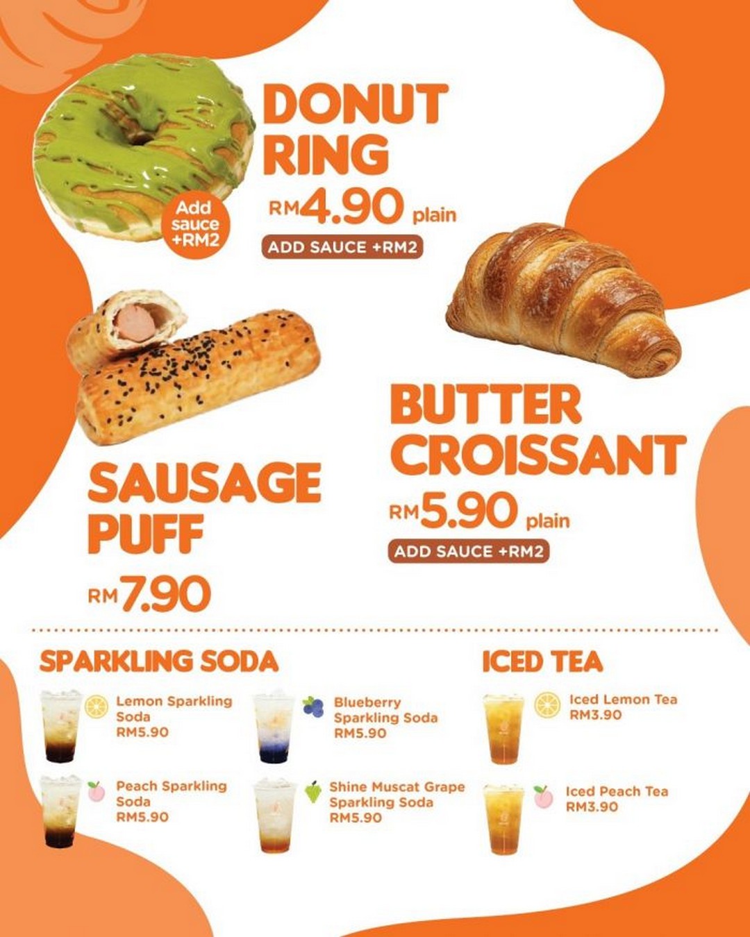 For those who prefer something refreshing and fizzy, the Sparkling Soda Series priced at RM5.90 each is a popular choice. Options include Lemon Sparkling Soda, Peach Sparkling Soda, Blueberry Sparkling Soda, and Shine Muscat Grape Sparkling Soda. These drinks are ideal for Malaysia’s warm weather and provide a refreshing balance to the pastries.