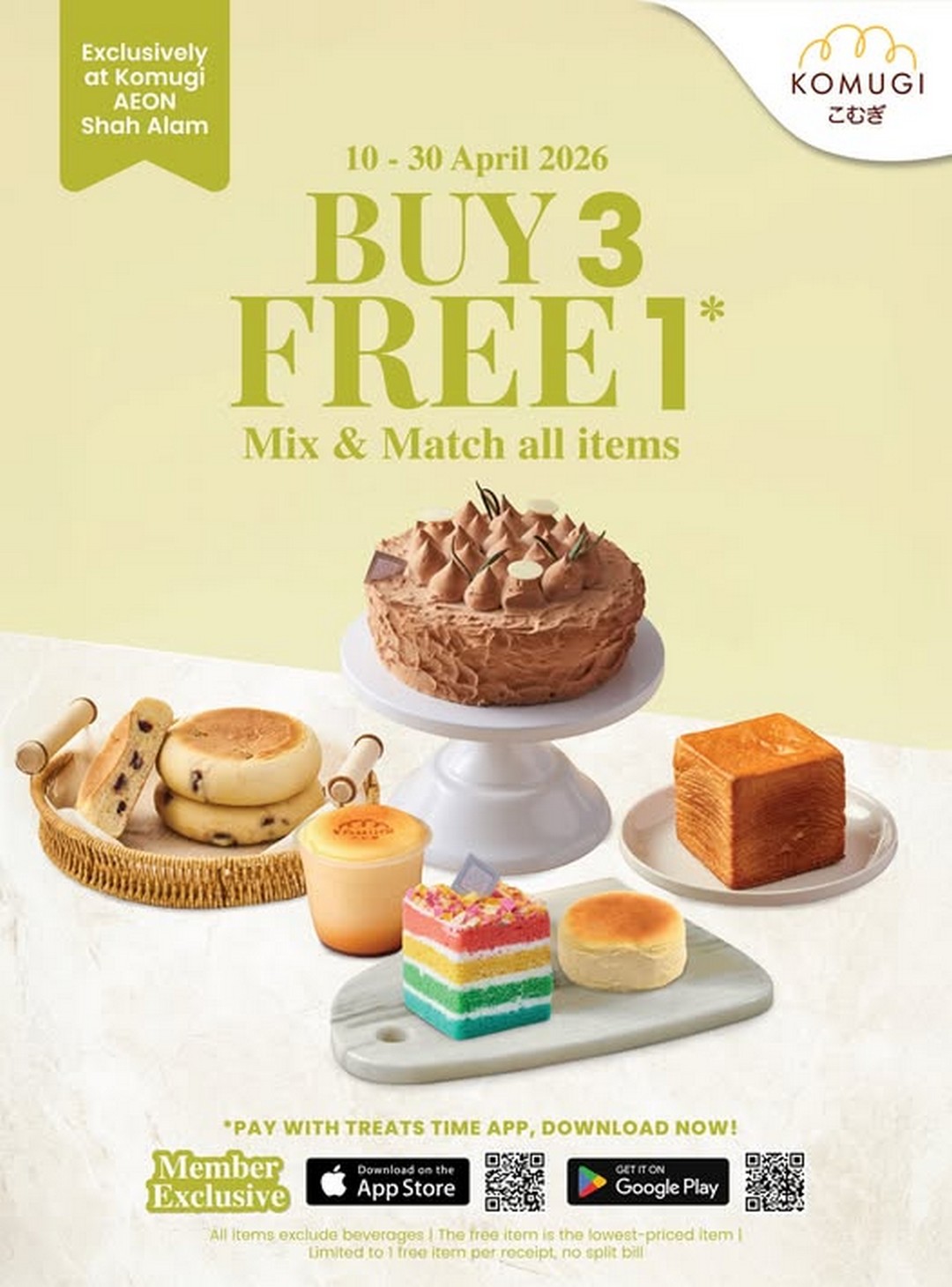 If there is one thing that always draws attention among bakery lovers in Malaysia, it is a well-timed promotion that allows customers to enjoy premium baked goods at a much better value. This April, Komugi Malaysia is bringing exactly that kind of excitement exclusively to AEON Shah Alam, offering a Buy 3 FREE 1 promotion across all items, excluding beverages. Running from 10 April 2026 until 30 April 2026, this limited-time deal is available only for Treats Time App wallet members, making it even more rewarding for those who are already part of the loyalty programme.
