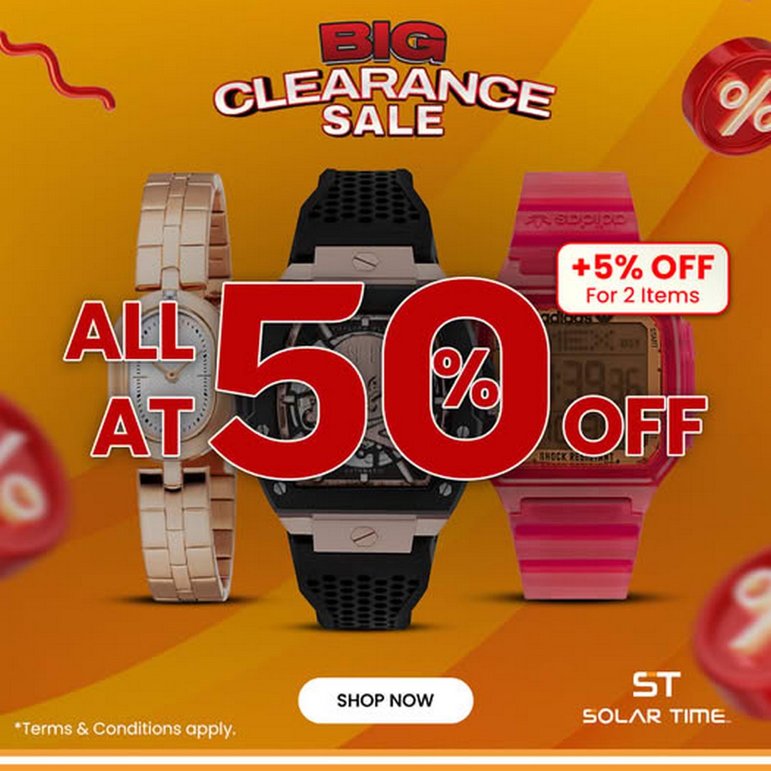 Overall, the Solar Time BIG CLEARANCE SALE is shaping up to be one of those practical shopping opportunities that combines style, affordability, and genuine product value. The presence of original branded watches, warranty coverage of up to 24 months, and stacked discounts makes it more than just a simple discount event.