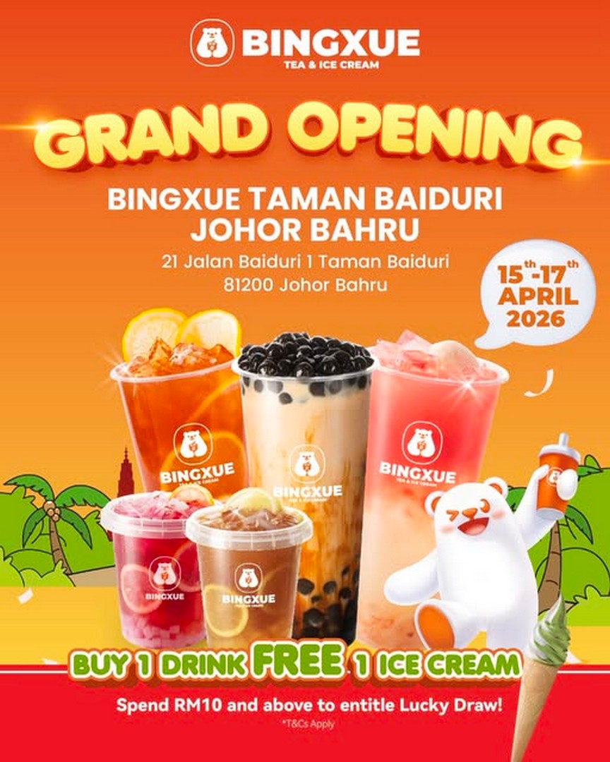 Set to take place from 15 to 17 April 2026, this opening is not just a simple ribbon-cutting moment. It is a three-day celebration introducing Bingxue’s signature drinks to the local crowd, giving visitors a chance to experience their popular menu items in a lively, festive atmosphere. For many drink lovers in Johor Bahru, this is likely to be one of those casual weekend stops that turns into a memorable outing.