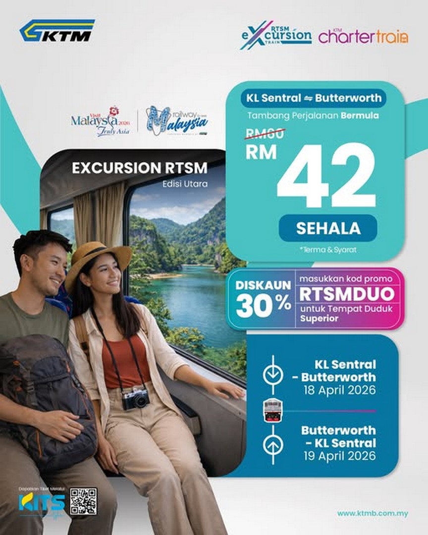 Tickets for the RTSM Excursion (North Edition) with the 30% DUO discount can be purchased through the official KTM Berhad platform at https://bit.ly/47J3W1w or via KITS Style and selected kiosks. Since this is a limited-time promotion, early booking is recommended to secure preferred seats, especially for weekend departures.