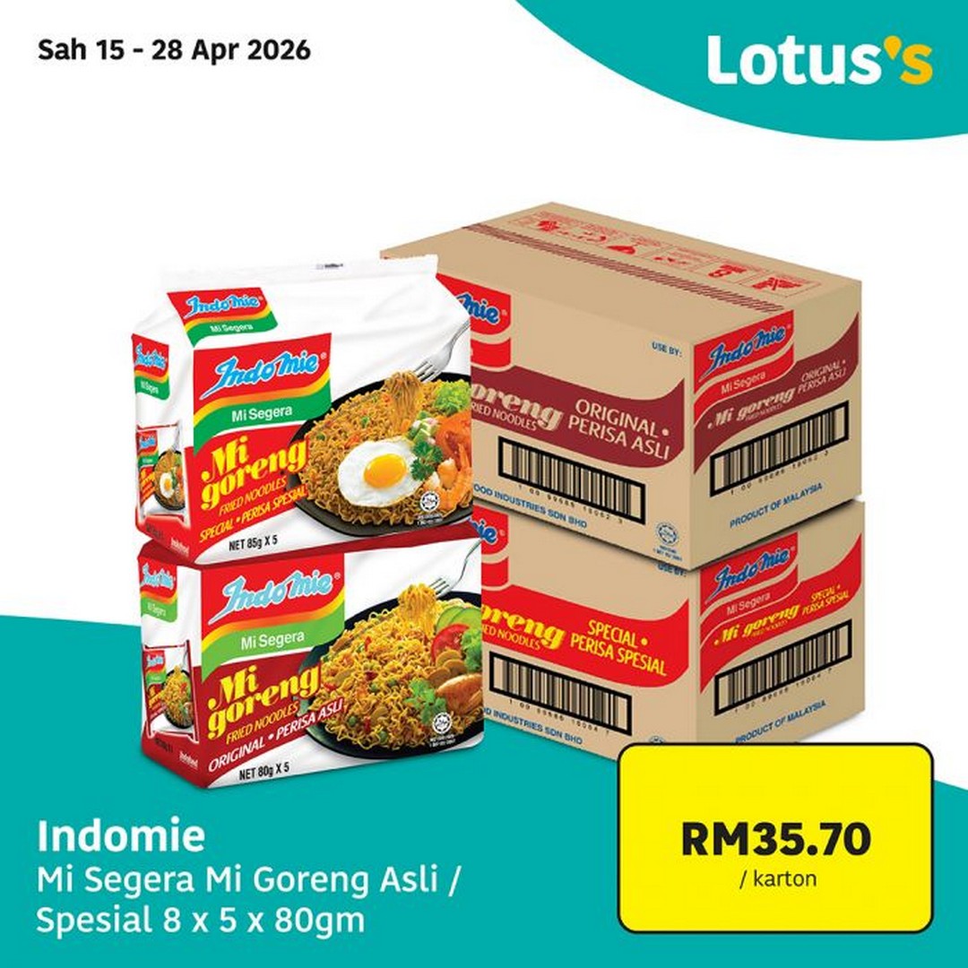 The second phase of the promotion, running until 28 April 2026, shifts focus towards dry goods and packaged essentials. This is where the real long-term savings begin to show. Staple items such as bihun, instant noodles, chilli sauce, and beverages are offered in carton deals that make stocking up both convenient and economical.