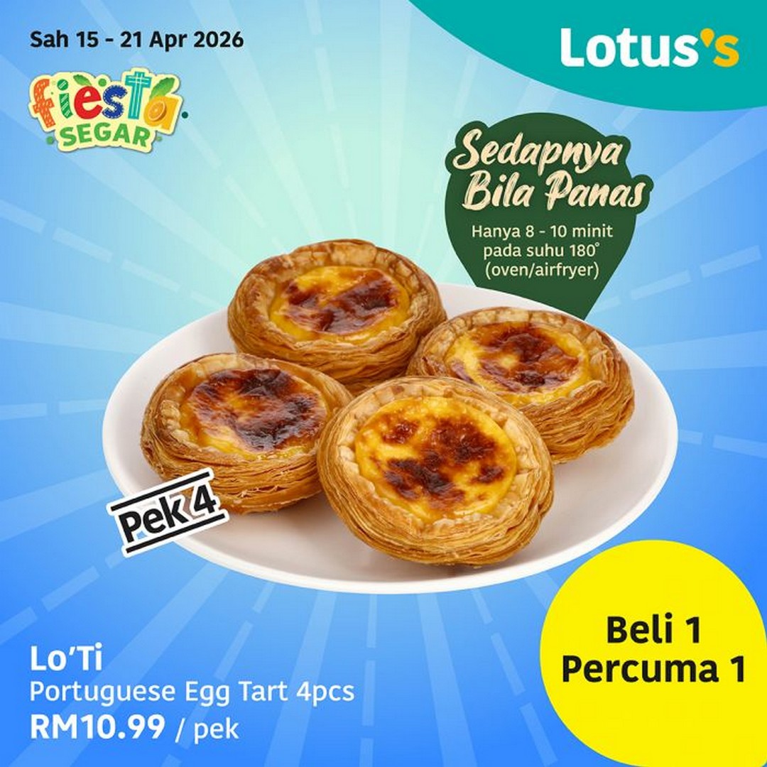 Of course, no grocery promotion would feel complete without something indulgent, and this is where the bakery selections come into play. Lotus’s has included several baked goods under the Buy 1 Free 1 offer, such as the Lo’Ti Portuguese Egg Tarts (4 pieces at RM10.99), Vanilla Cupcakes (4 pieces at RM4.99), and Roti Sosej (6 pieces at RM2.99). These are not just convenient snacks, but also small treats that can brighten up an ordinary day.