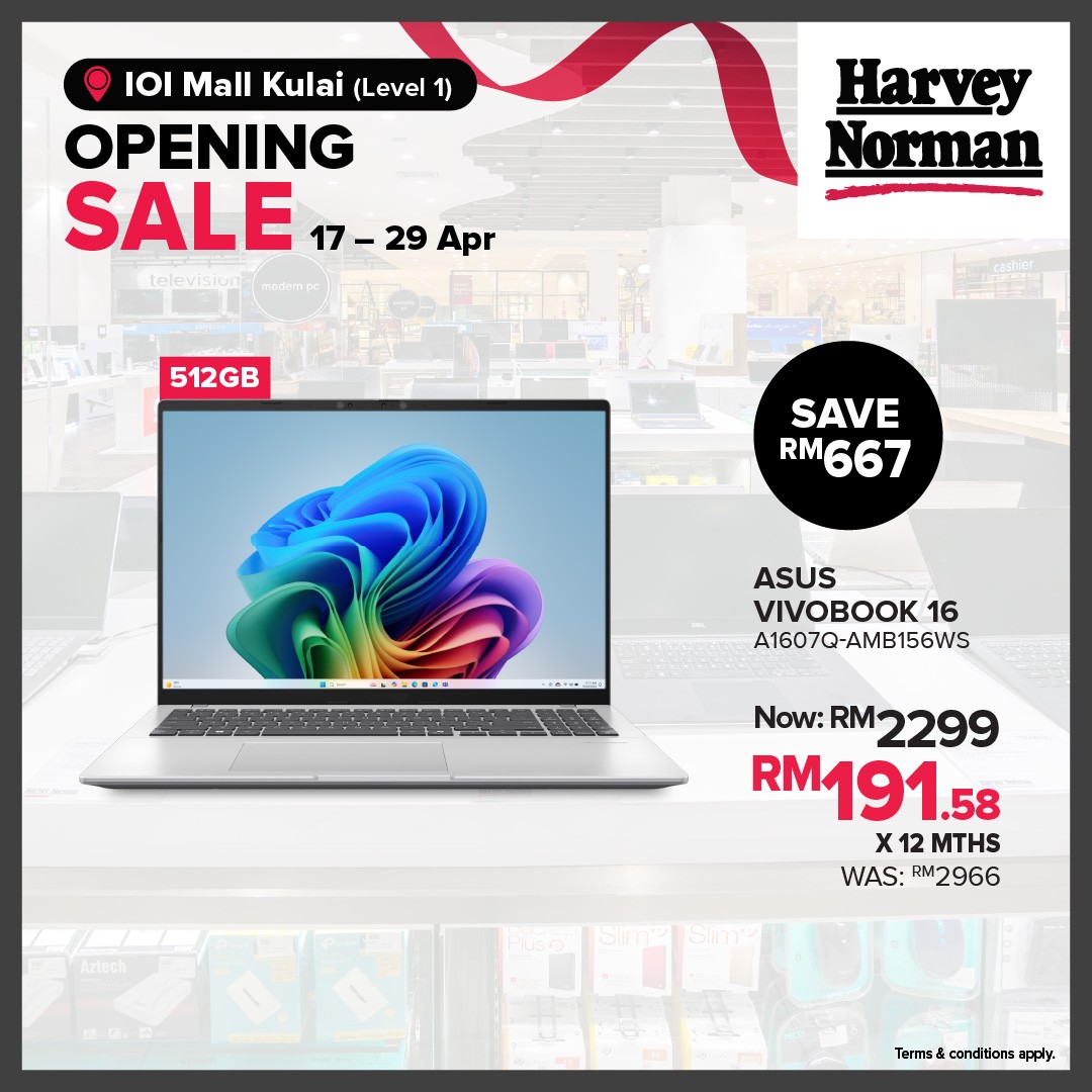 Venue: Harvey Norman IOI Mall Kulai, Level 1, IOI Mall Kulai, Johor, Malaysia