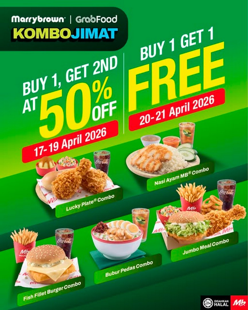 For those who regularly rely on GrabFood for lunch breaks, late-night cravings, or even casual family dinners at home, this is the kind of promotion that tends to stand out. Marrybrown, known for its Malaysian-style fast food offerings such as crispy fried chicken, nasi lemak meals, burgers, and local-inspired sides, is offering a deal that encourages both solo ordering and group sharing depending on the date.