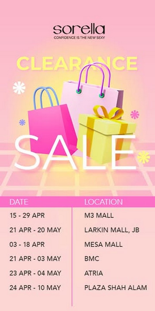 Venue: Selected Sorella outlets in Malaysia (M3 Mall, Larkin Mall JB, Mesa Mall, BMC, Atria, Plaza Shah Alam)