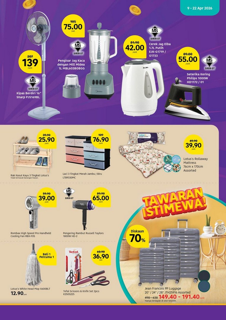 In summary, the Lotus’s Malaysia “Harga Hangat” Promotion Catalogue for April 2026 is more than just a supermarket sale. It is a comprehensive savings event that covers fresh produce, household essentials, electronics, and member-exclusive discounts all in one place. With Buy 1 Free 1 deals on selected fresh items and up to 40% member savings, it offers a strong reason for shoppers to plan their grocery runs during this period.