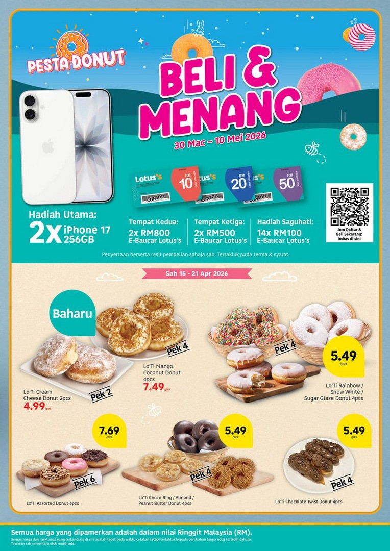 There is also an additional campaign running alongside this promotion period, known as the “Beli & Menang Pesta Donut” contest, which runs from 30 March to 10 May 2026. Shoppers who participate stand a chance to win prizes such as iPhone 17 (256GB units). While shopping savings are already attractive on their own, the added chance of winning prizes gives an extra incentive for participation.