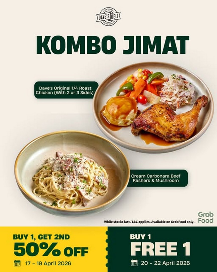 When it comes to comfort food in Malaysia, few things hit the spot quite like a well-roasted chicken meal or a creamy pasta dish after a long day. It is the kind of food that does not try too hard, but still manages to satisfy cravings in a simple and honest way. That is exactly the idea behind the latest KOMBO JIMAT DEALS by Dave’s Deli Malaysia, running exclusively through GrabFood for a limited period.