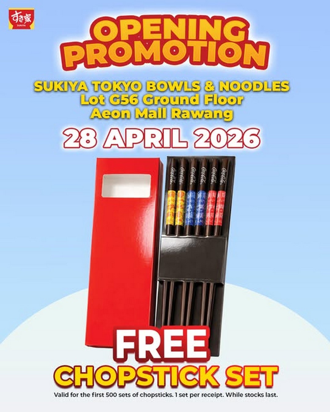 For those who enjoy sharing good finds with friends or family, this is also a great chance to introduce them to Sukiya if they have not tried it before. A free gift always adds a little extra excitement, especially when it is something practical like a chopstick set that can actually be used at home.