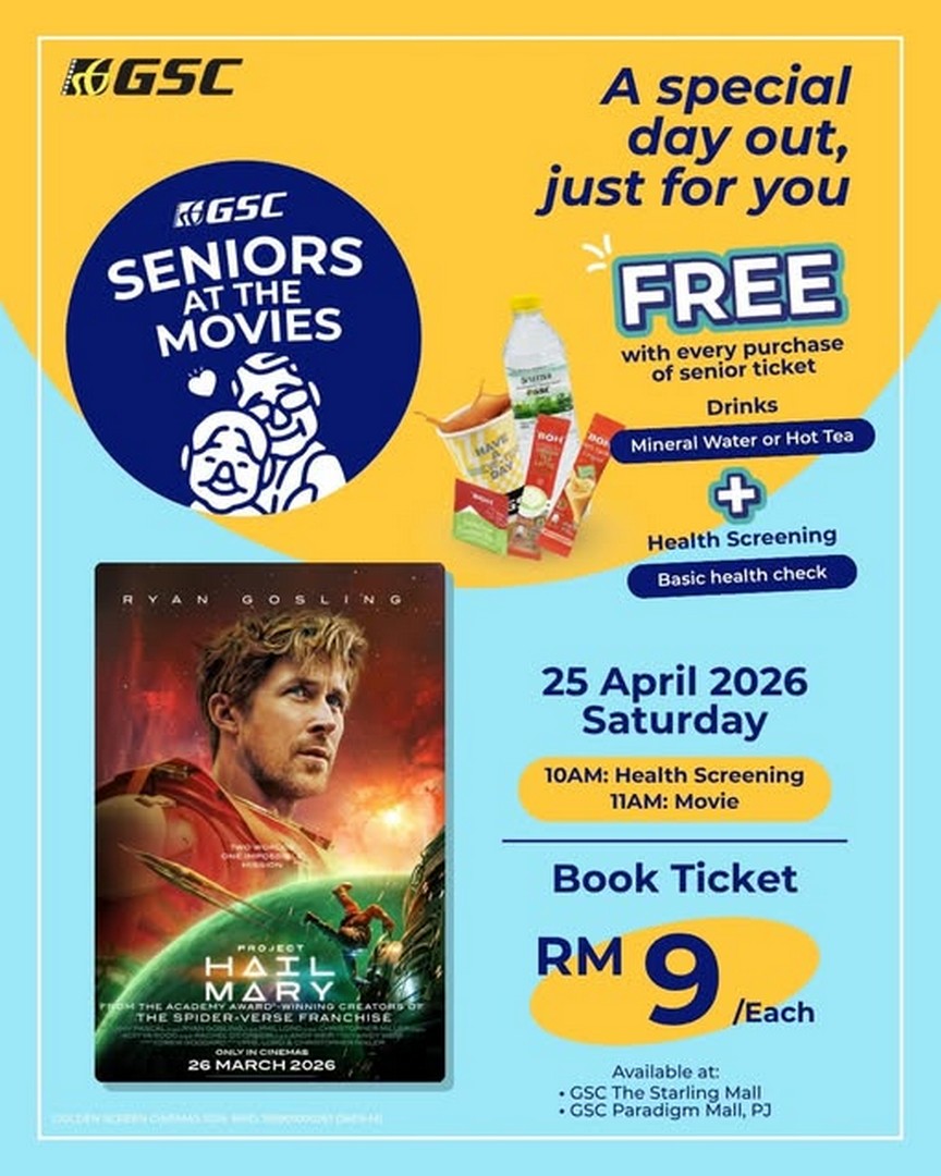 Taking place on 25 April 2026, this “Seniors at the Movies” event is designed with families in mind. For just RM9, parents can enjoy not only a movie screening but also a complimentary basic health screening before the show begins. It is a combination that feels both practical and heartwarming—entertainment paired with genuine care.