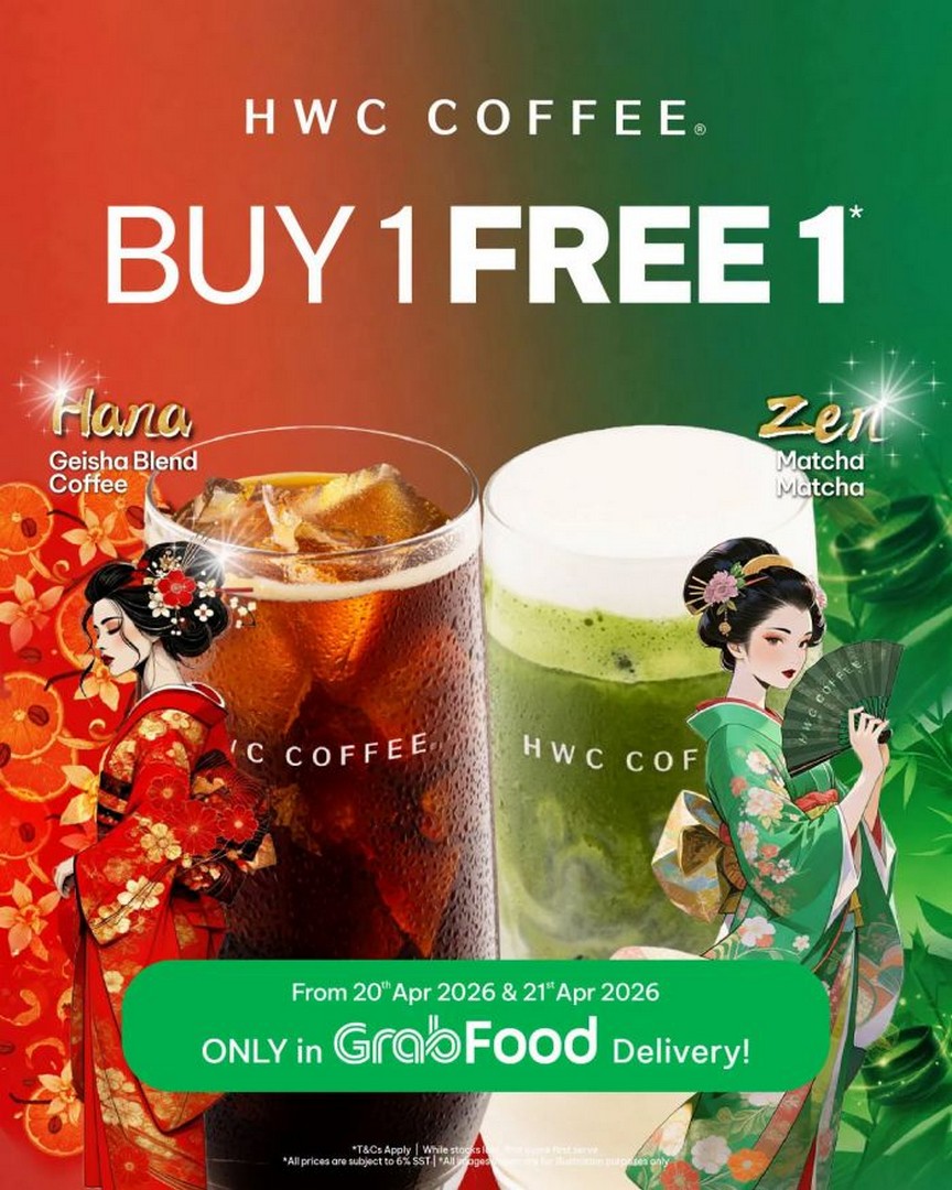 Running for only two days, from 20 to 21 April 2026, this Buy 1 Free 1 deal is strictly available via GrabFood delivery. That alone already makes it interesting, especially for those who prefer convenience and comfort over queueing in crowded cafés.