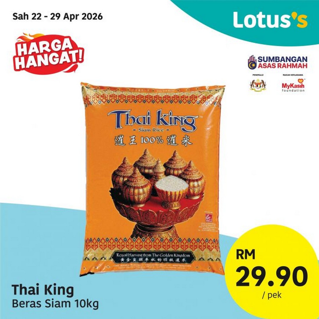 One of the most notable deals is the Thai King Beras Siam 10kg rice pack at RM29.90. Rice being a daily staple in Malaysian homes, this is the kind of bulk purchase that helps reduce frequent supermarket trips.
