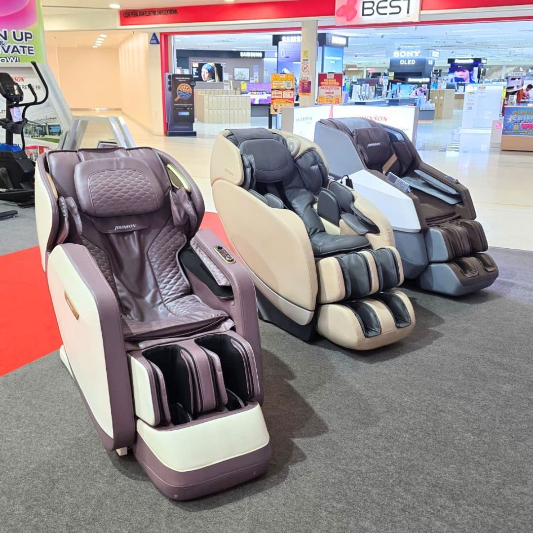 One of the main attractions during this event is the Johnson J. Auro massage chair, available at a promotional display unit price of RM7,888. For many households, massage chairs are often seen as a luxury purchase. However, considering the price of regular spa visits or physiotherapy sessions, a home massage chair can actually become a practical long-term investment for stress relief, muscle recovery, and relaxation after long working days.