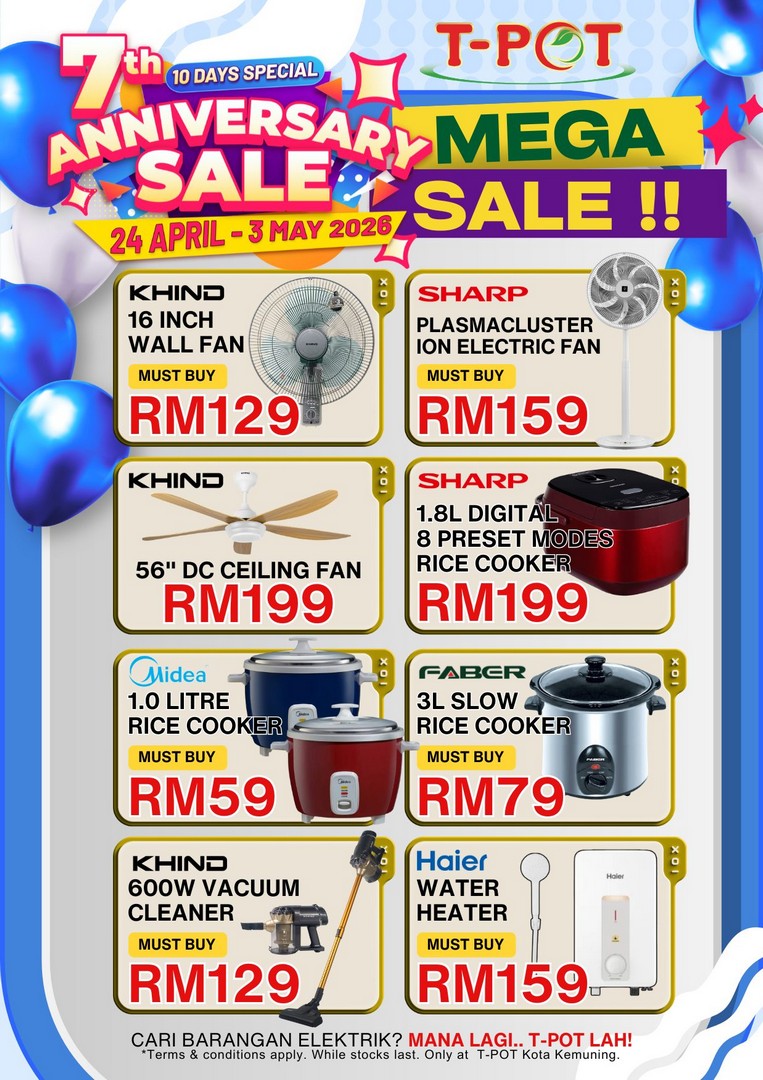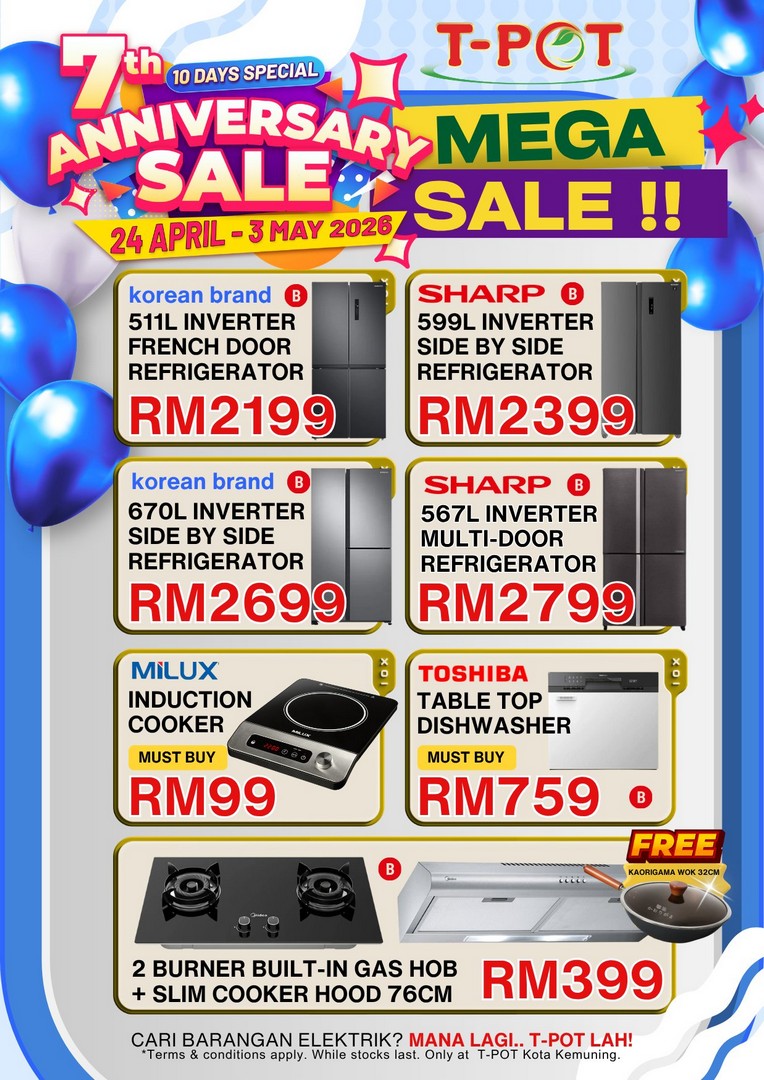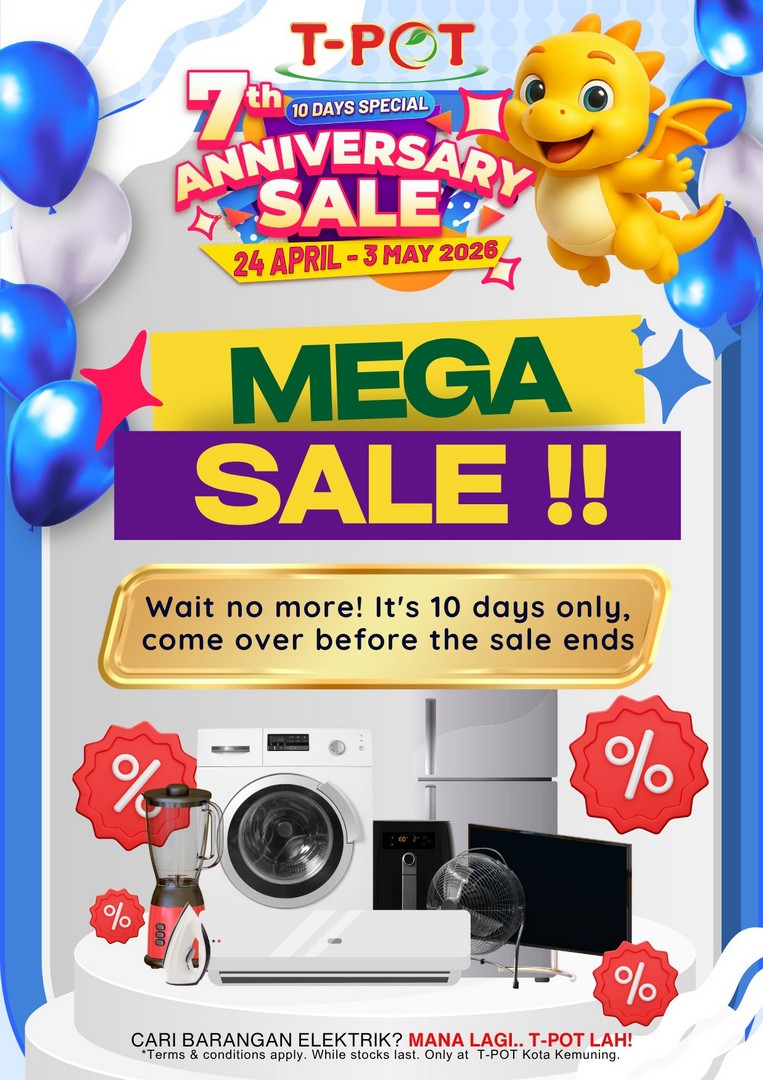 From 24 April to 3 May 2026, T-Pot Group is rolling out what they are calling their biggest anniversary sale ever. This is not just a simple discount campaign tucked into a corner of a store. It is a full 10-day celebration packed with promotions, family-friendly activities, product showcases, and limited-time deals designed to attract bargain hunters, home appliance shoppers, and anyone who enjoys stretching their ringgit further.