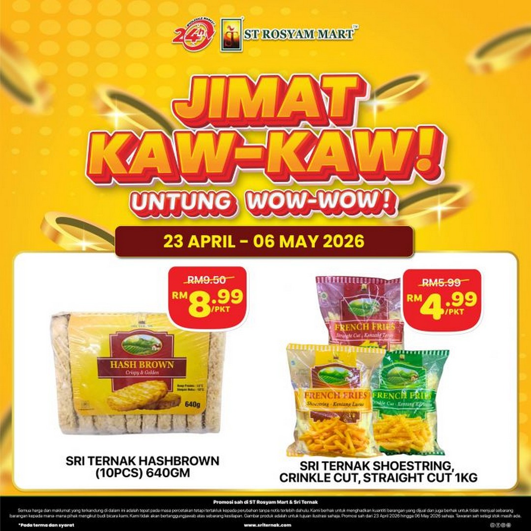 Venue: ST Rosyam Mart outlets (Setiawangsa, Shah Alam, USJ, Sungai Buloh, Taman Ehsan, Semenyih, Senawang, Klang) and participating Sri Ternak stores