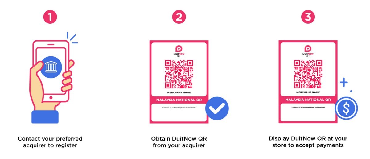 - Contact your preferred bank/acquirer to register for DuitNow QR