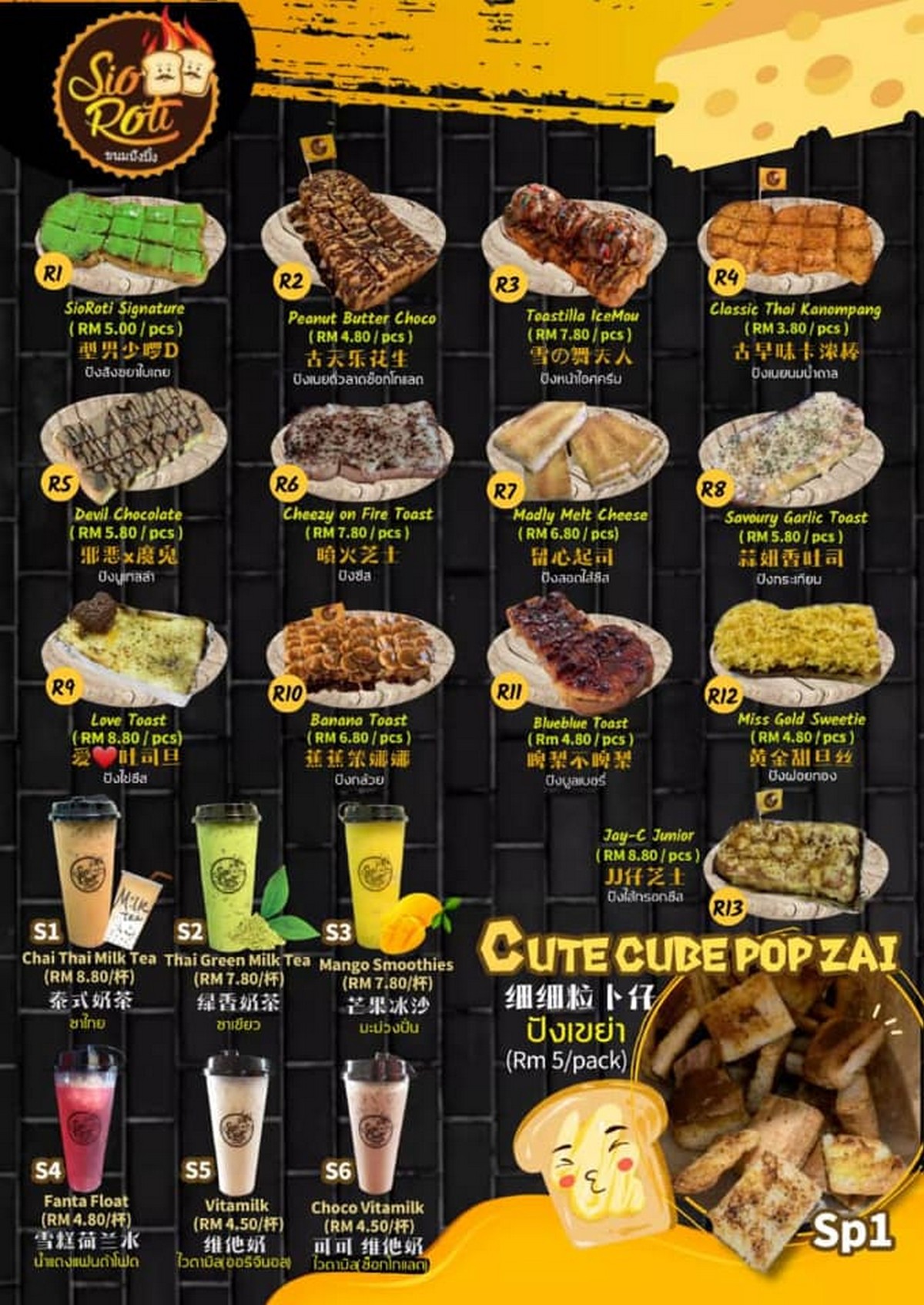 If you love Thai food so much then you should check out this Food Truck which is serving some Thai-style toast bread, SioRoti, is where you can enjoy street snack like a tourist in Thailand, and this food truck is located in Kepong which you can enjoy this Toast Bread with 13 different topping here. Here is the list of their toppings which you can choose: