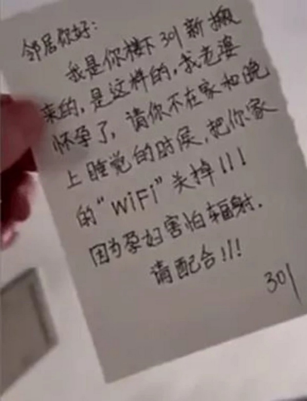 Sometimes we might hear some over-worries stories which will somehow make you think that either the person is really stupid or they just don’t somehow think on other people’s shoes. Where a Man from Qingdao, Shandong, China as he has handwritten letter to his neighbour where he has a special request as his wife who has pregnant and asked his neighbour upstairs to turn off his wifi as he was worried that the radiation would affect his unborn baby.