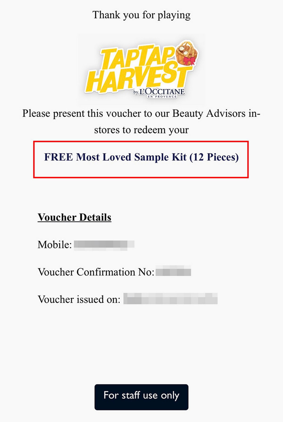 Go directly to the L’OCCITANE branch, show the link in your SMS to the clerk, and you can redeem it for free!